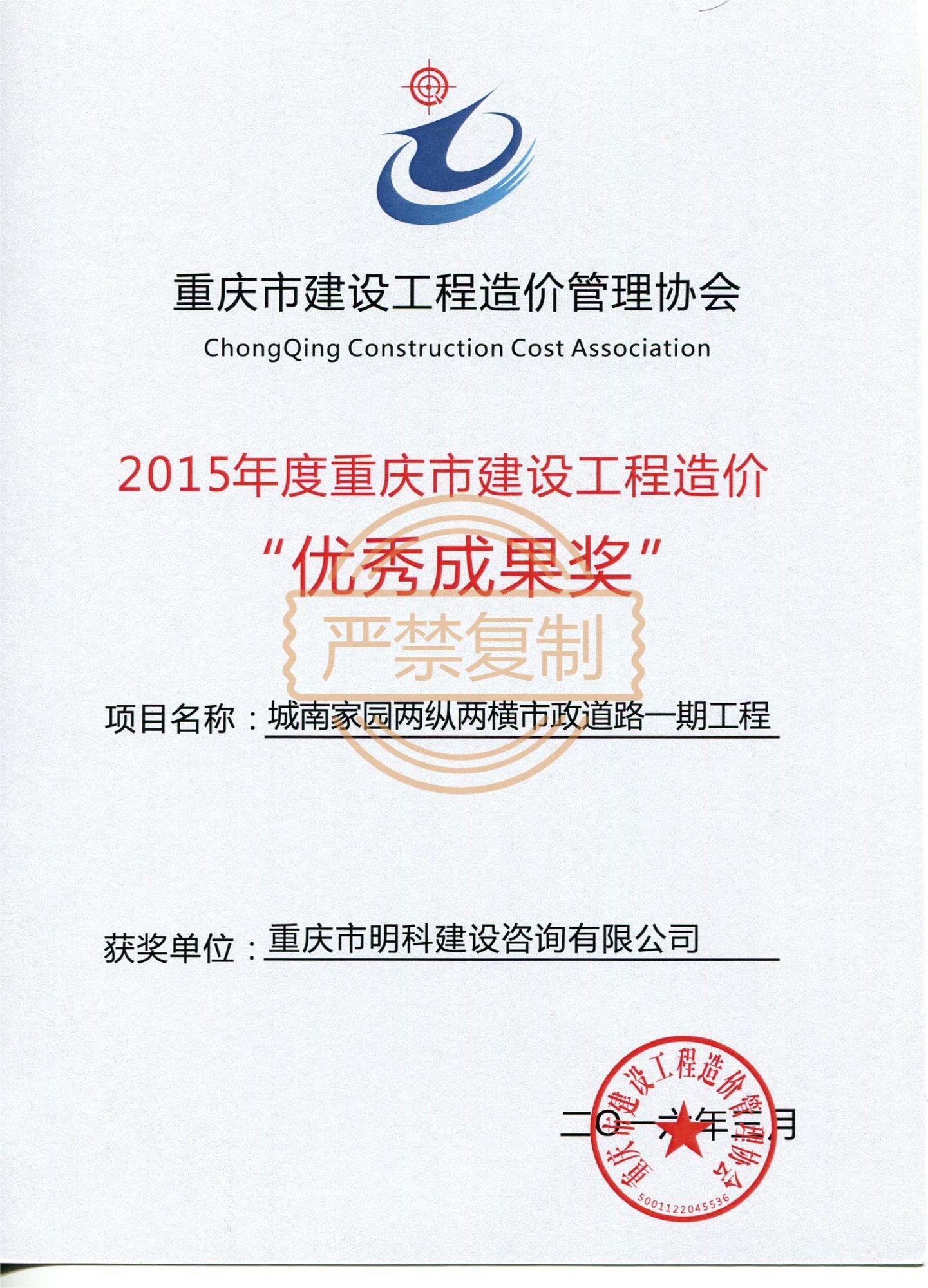 2016.03-重庆市造价管理协会-2015年度优秀成果奖-城南家园两纵两横市政道路一期工程