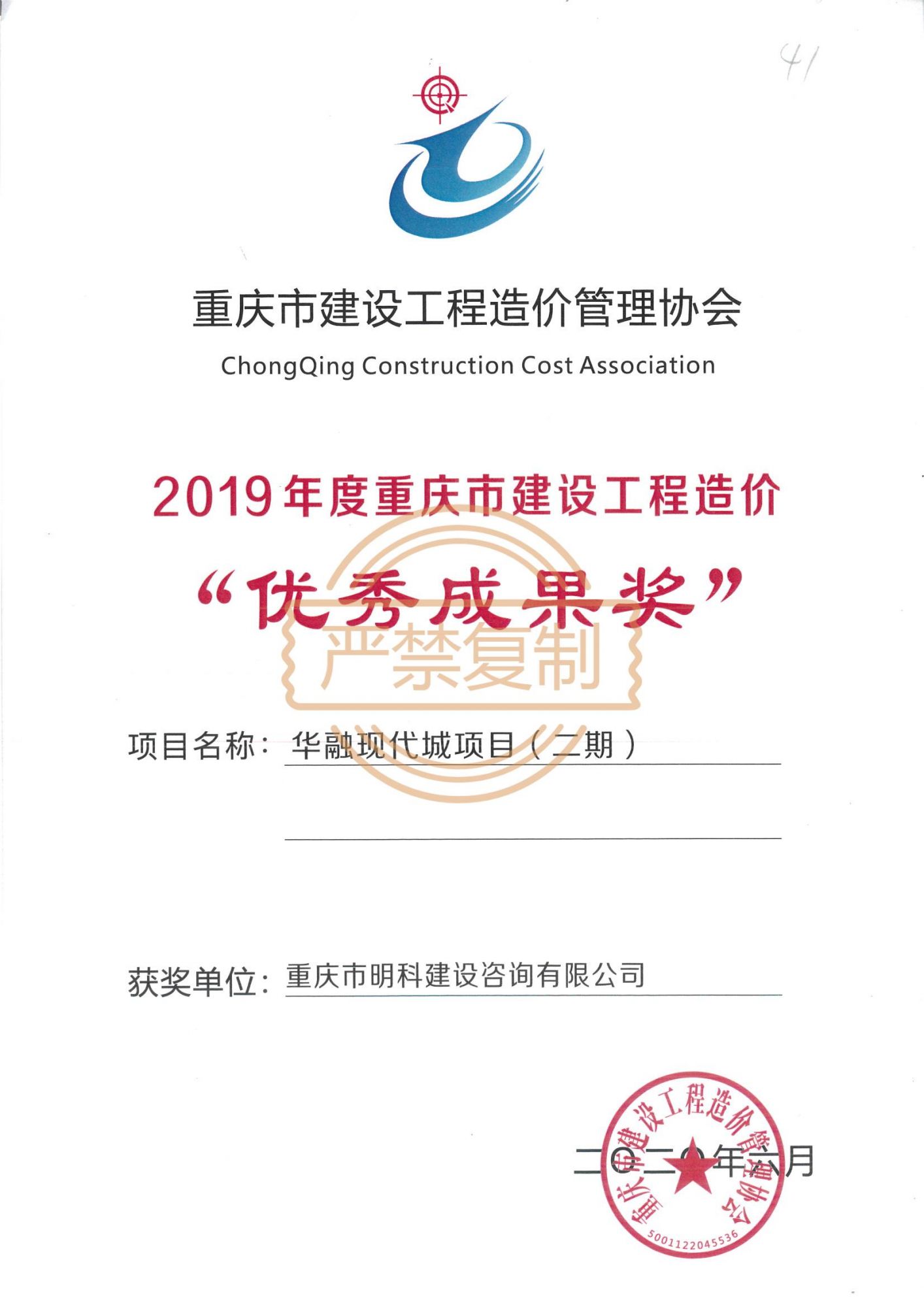 2020.06-重庆造价协会-2019年度优秀成果奖-华融现代项目二期